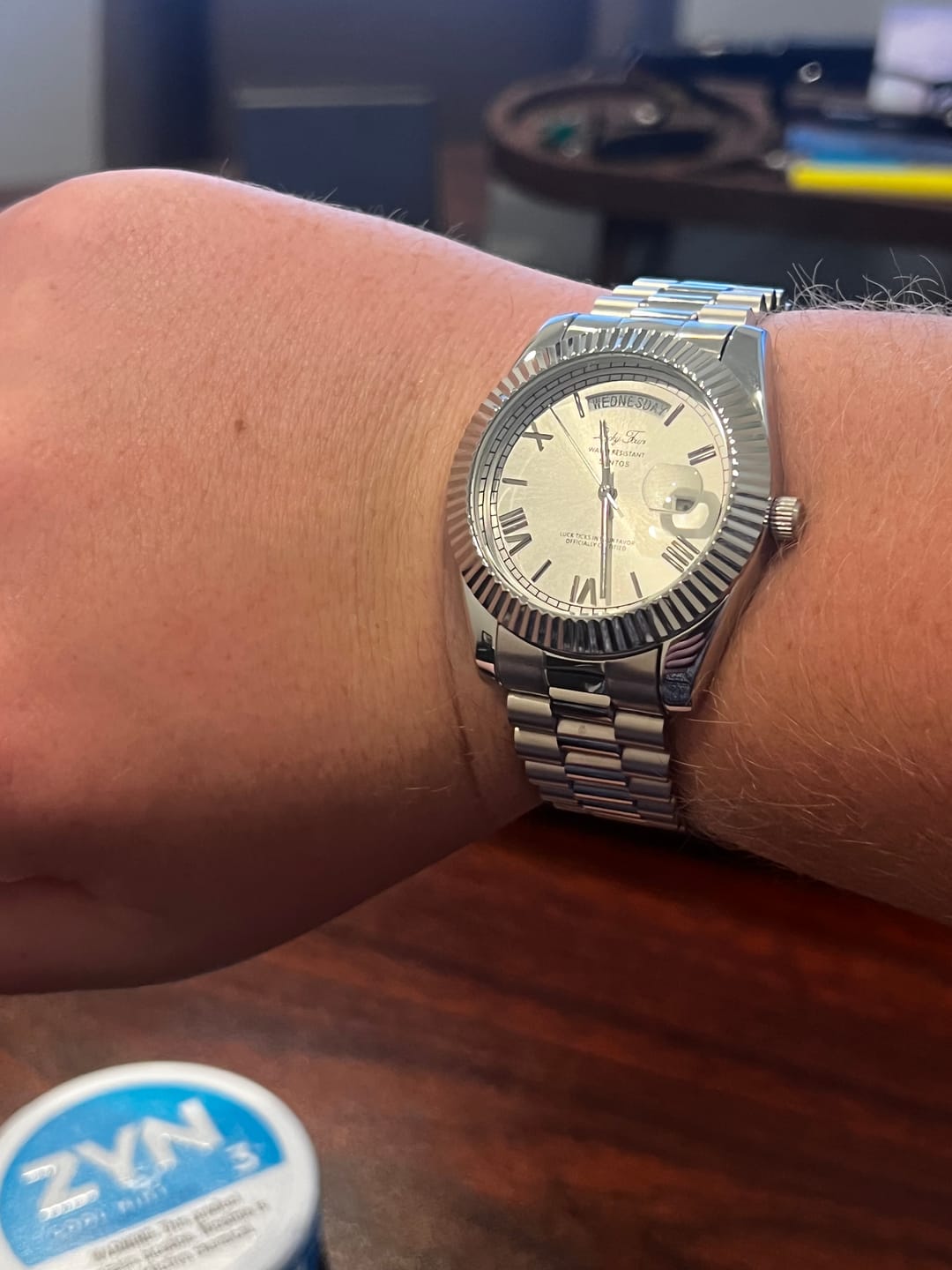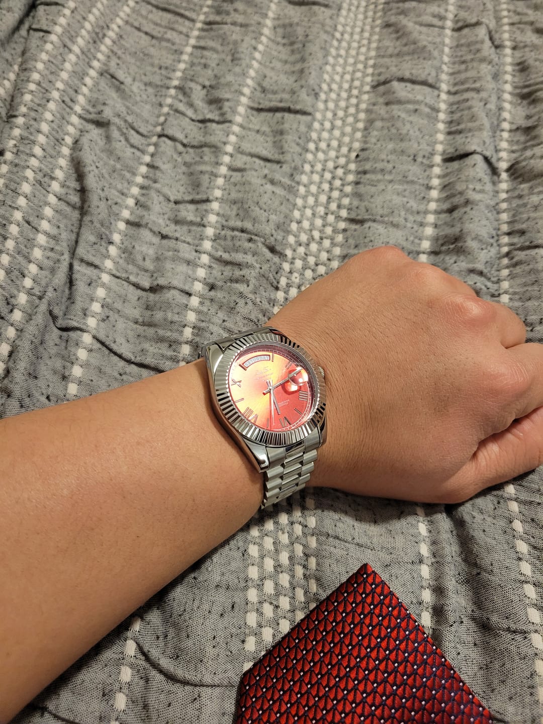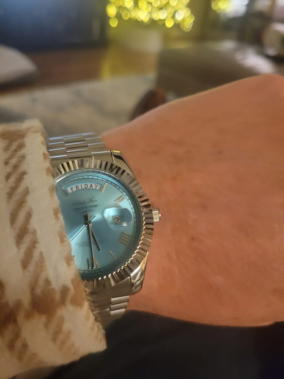 This watch is absolutely gorgeous, and actually reminds me of the day date that I own from Rolex. I've decided to wear this on more of a regular basis because it wasn't as much of an investment. But, people can't tell the difference unless I show it to them